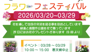 2026/03/20~03/29第1回フラワーフェスティバル開催いたします。2026/03/20~03/29に南ユーカリが丘の緑道と遠間作公園をたくさんのお花で彩ります。皆様是非いらしてください。28・29日は遠間作公園でお店も出て盛り上げ...